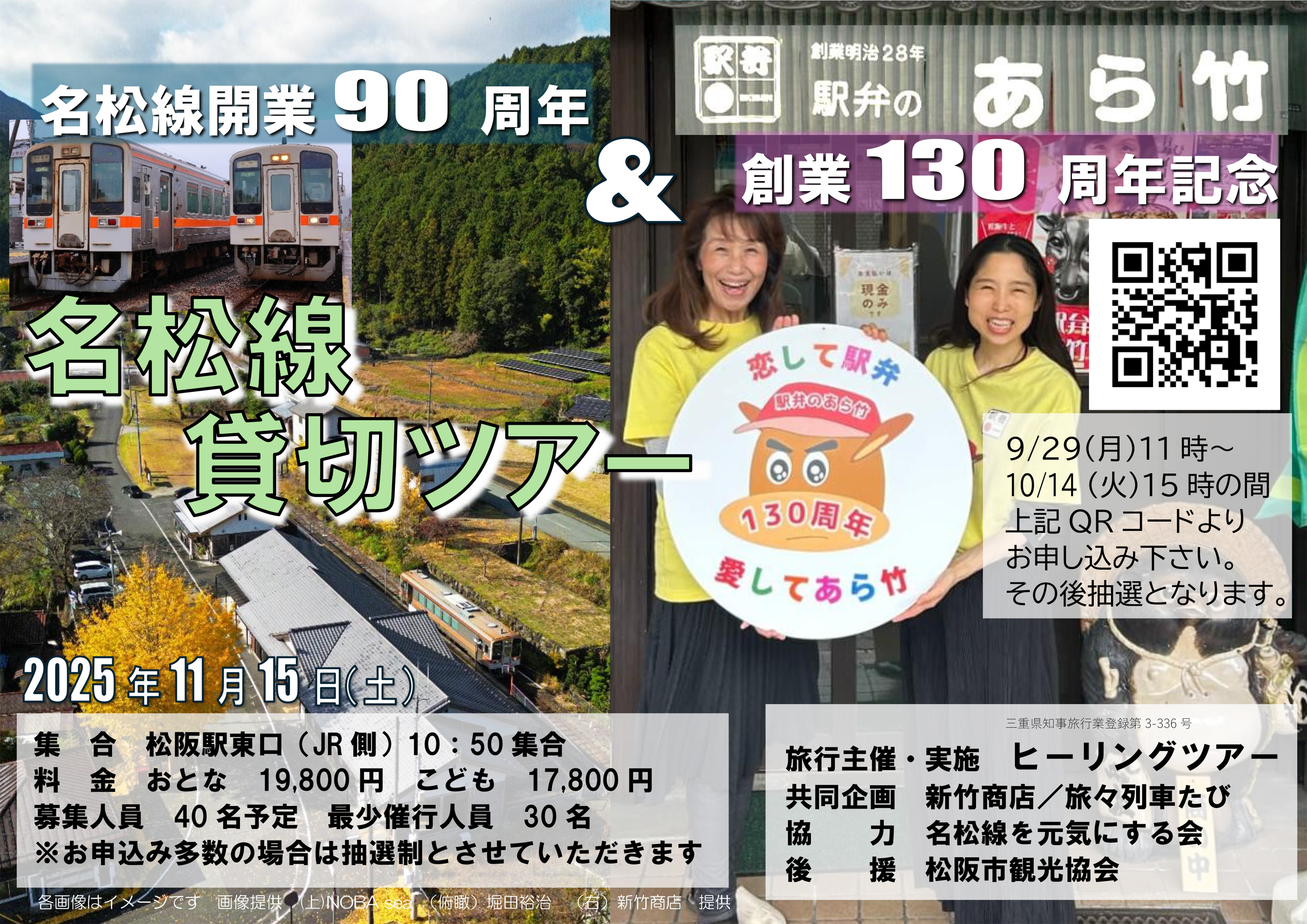「名松線開業90周年」と「あら竹創業130周年」をお祝いして名松線を貸切列車が走ります!